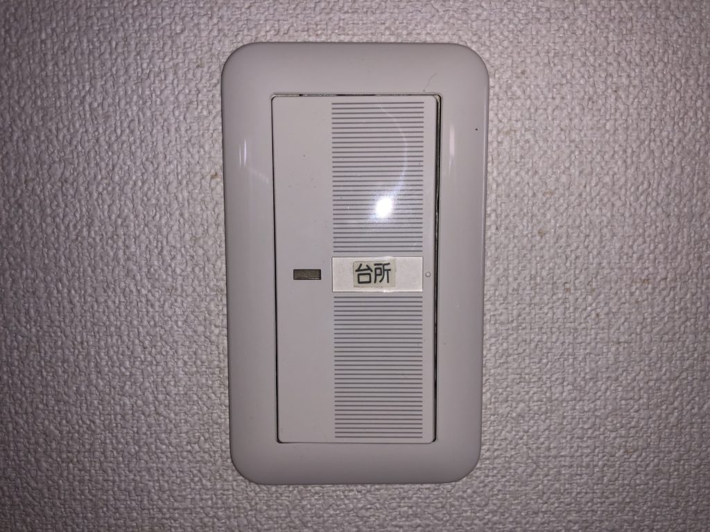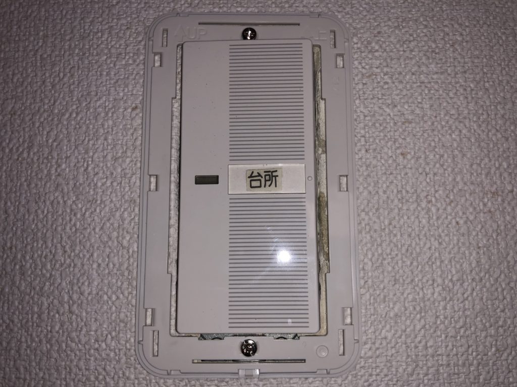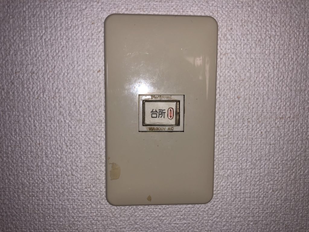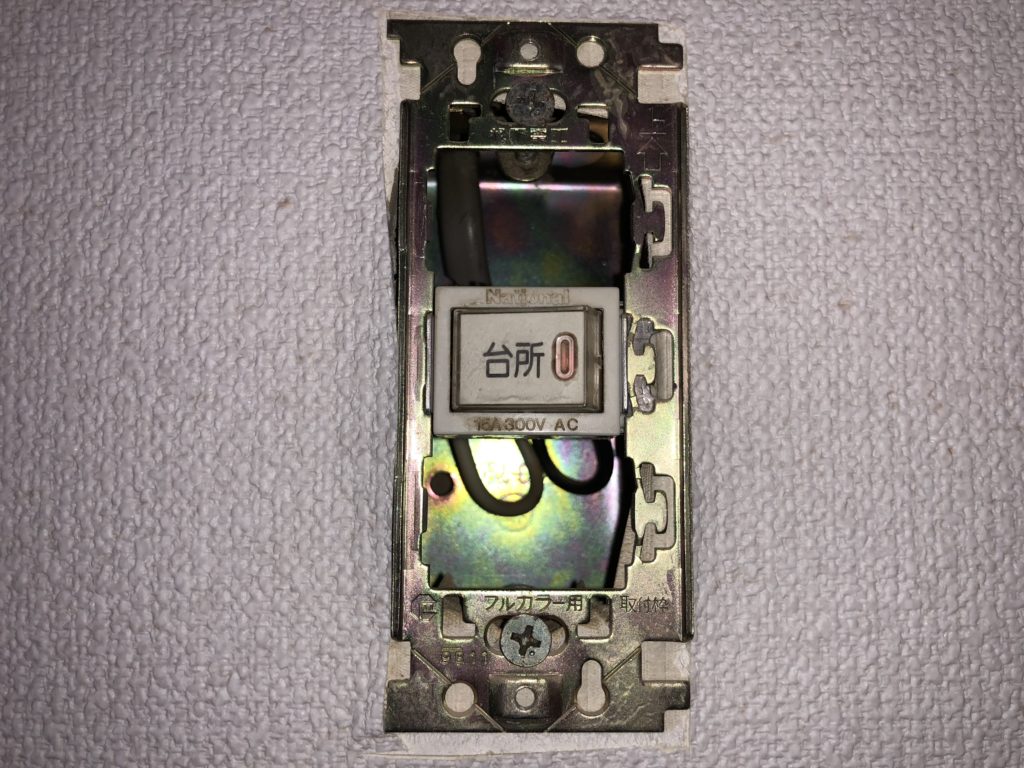 今回取り替えるのは、写真のような古い照明スイッチです。年季も入っているので、この機会に新しいものに交換します。