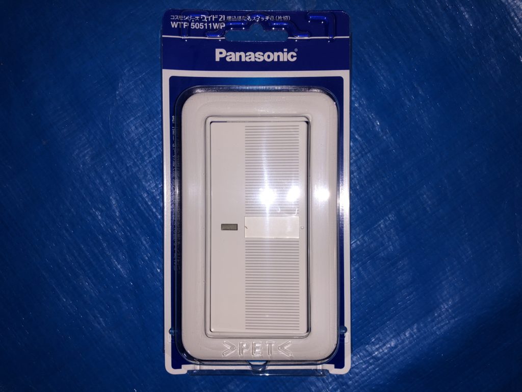 今回は、そんな片切スイッチを、パナソニックの「コスモワイド21 埋込ほたるスイッチB(片切)WTP50511WP」に交換してみます。