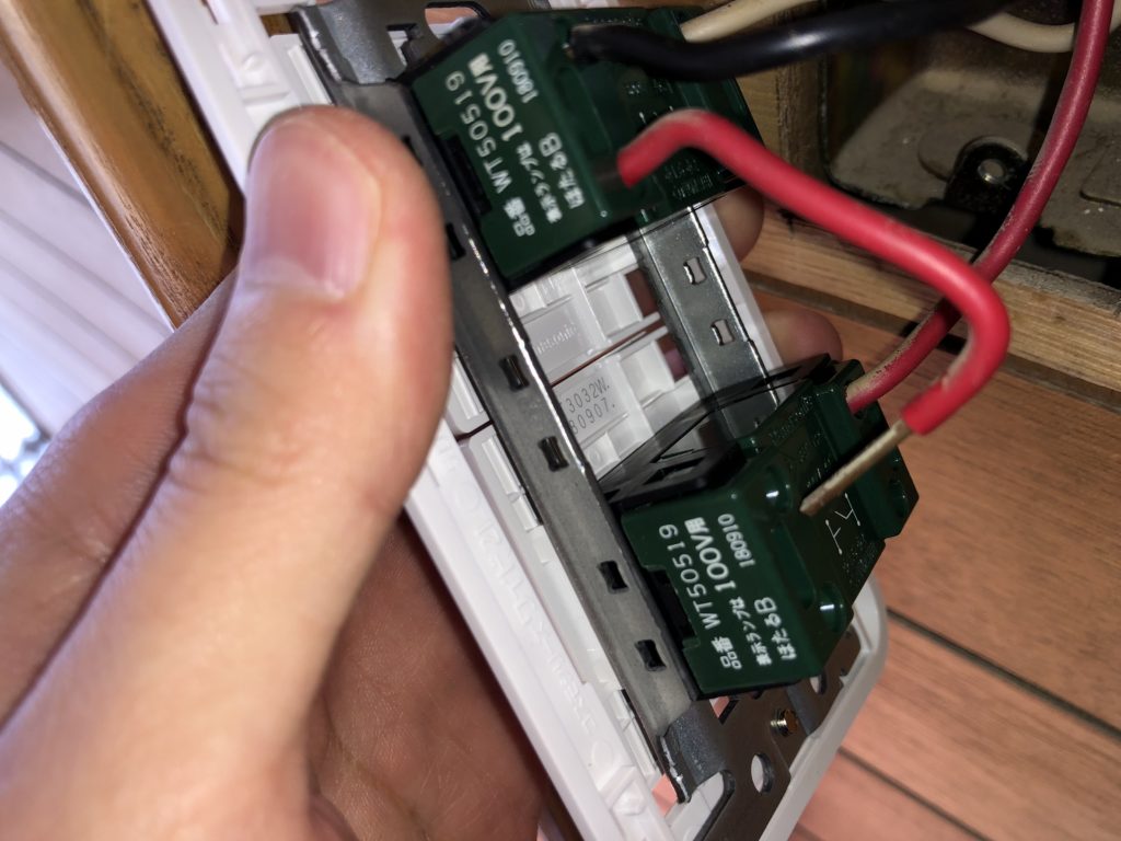 壁から出ている配線を、新しいスイッチに差し込みます。